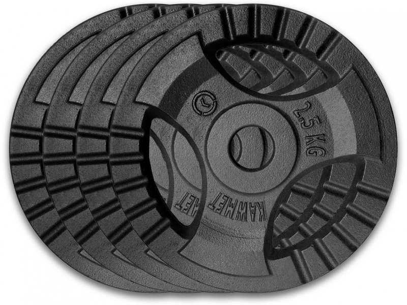 Obciążenia wykonane z wysokiej jakości żeliwa, starannie wykończone dzięki czemu sprawdza się zarówno w siłowniach komercyjnych i domowych. Powierzchnia zabezpieczona specjalną farbą. Konstrukcja Tri-Grip pozwala na szybką zmianę obciążeń na sztandze lub gryfie.